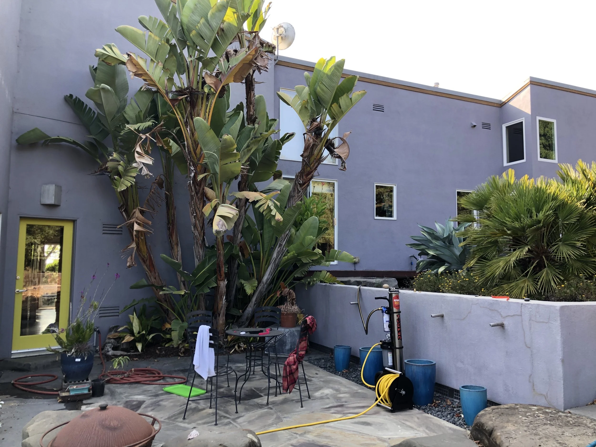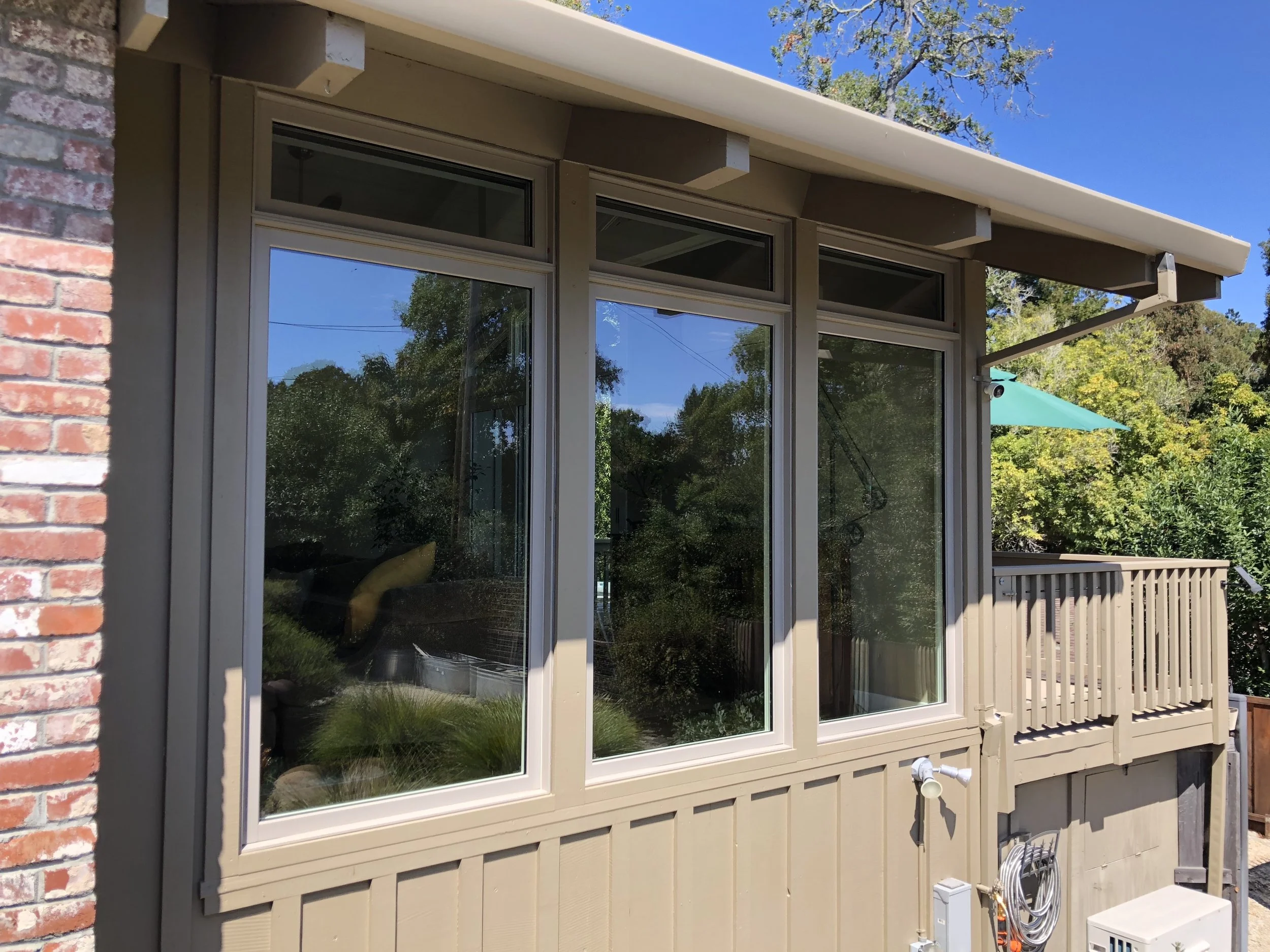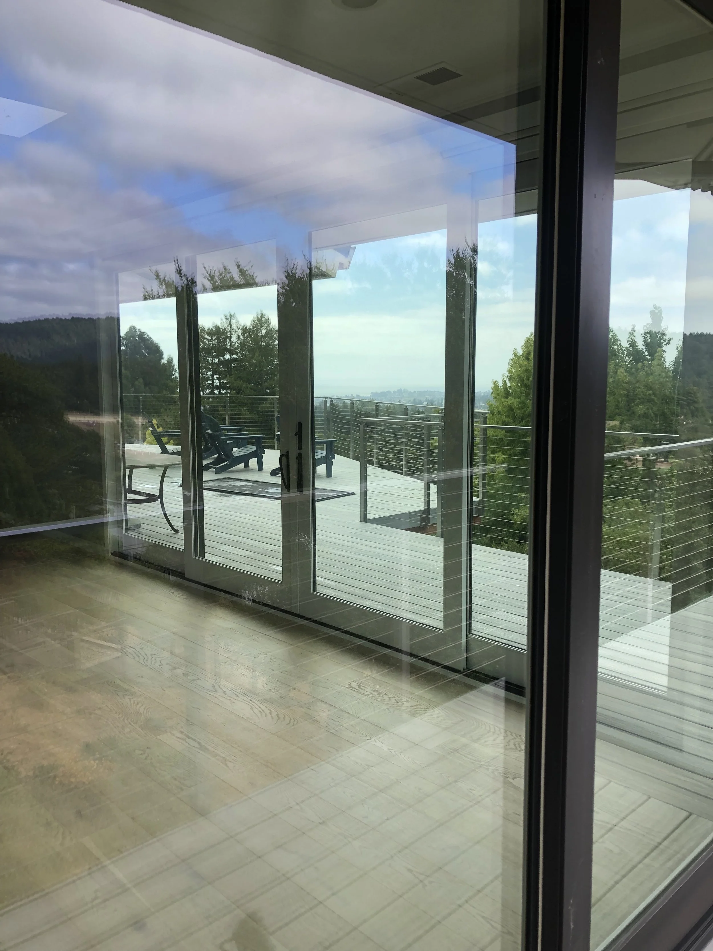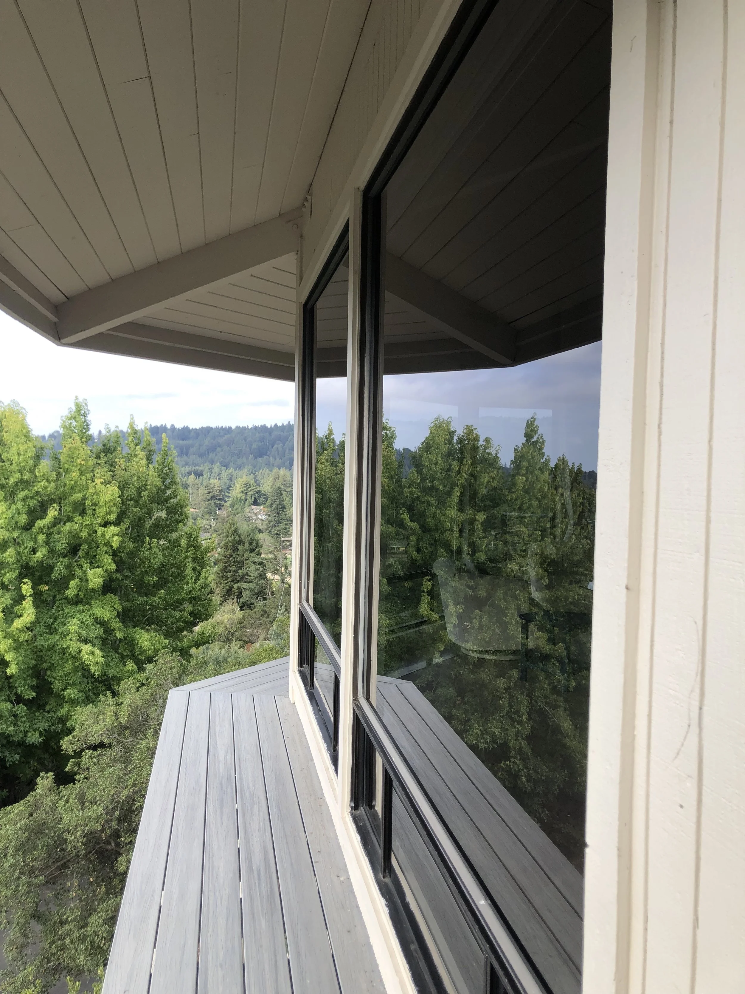 The water fed pole system that I use involves a 3 stage filter which you can see in the above photo. The water first passes through a carbon filter to catch any chlorine and rust. It then passes through a reverse osmosis filter which is in the long cylindrical steel case body. Lastly, the water is filtered through a De-Ionization resin membrane. Why is this important? Tap water can be quite hard with many hard minerals inside. Currently the water in this area reads around 220ppm Total Dissolved Solids. This 3 stage filter swiftly and efficiently filters all of the minerals out of the water before touching your glass for cleaning. I am able to have a Total Dissolved Solids reading of 001ppm after passing the water through my filter. It cleans the glass exceptionally well and dries completely spotless for a crystal clear view. There is no concern of minerals hardening on your glass to create issues with etching. The carbon fiber pole in which the hose runs through reaches up to 30 feet high so that I may clean your home or business in a safe and effective manner. Investing in this technology has given me the tools to tackle any job and provide the best service possible. I truly take pride in my work and love seeing a smile on people’s faces when I’m finished.